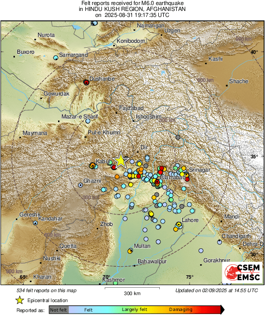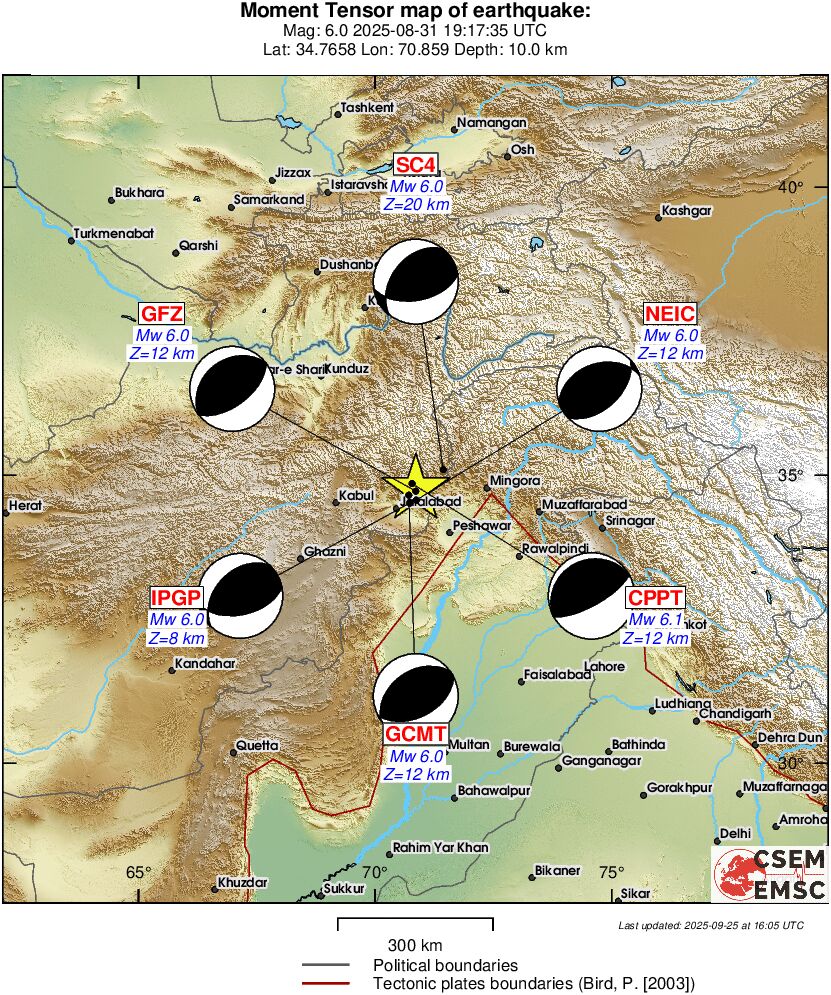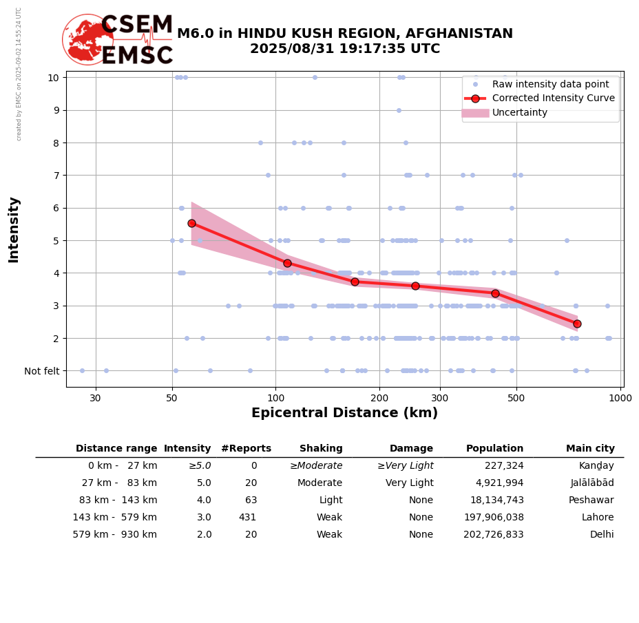Mw 6.0 HINDU KUSH REGION, AFGHANISTAN on August 31st 2025 at 19:17 UTC